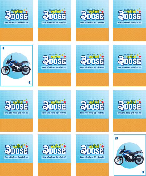 Test your memory with Bajaj 3 Dose Memory Game. The card matching game for pulsar is a memory game, where players have to match the cards that are spread out in a grid. The entire gameplay revolves around the players being able to remember which card they have already seen along with their position in the grid. The game is divided into 3 stages to match the structure of the 3 doses marketing campaign; each stage will have 15 levels with each level introducing bigger grids and newer failing conditions, while also awarding more points/ score for completing the level.